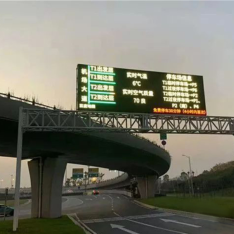 城市交通诱导屏是根据交管部门的具体使用要求实时在信息标志板上发布 交通状态信息。如道路封闭、突发事件、车道拥挤、停车泊位等信息。